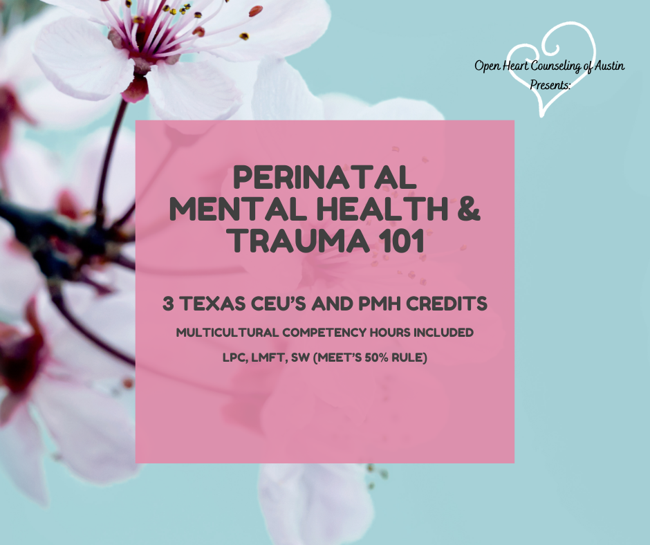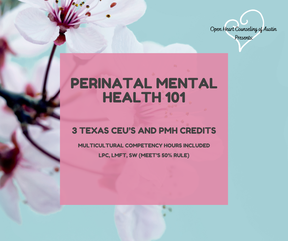 Can't decide which training to choose? Now you don't have to! Our complete Perinatal Mental Health series is available at an incredible rate! Originally a $550 value now for $350! Perinatal Mental Health credentialing approved.